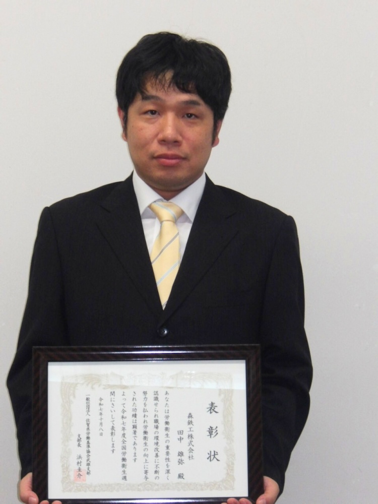 令和7年度労働衛生優良者として表彰され、表彰状が授与されました。